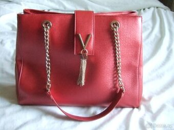 Kabelka červená se zlatými doplňky. Značka Valentino. Šířka 40 cm, výška 27 cm a dno 15 cm. Dá se nosit přes rameno. Jako nová. Žádné poškození.