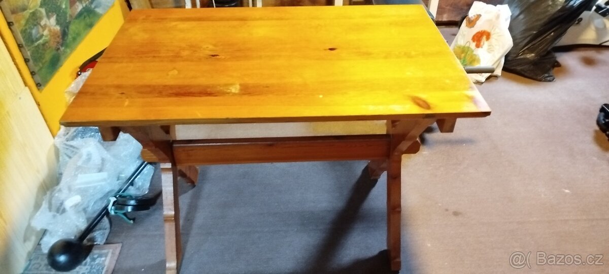 Prodám stůl masiv z borovice se dvěma židlemi taktéž z borovice .Možno zvlášť stůl 800Kč, židle 500Kč.cena za vše 1300.Ideální například na chatu.Stůl je rozebíratelný. Pouze osobní převzetí Liberec