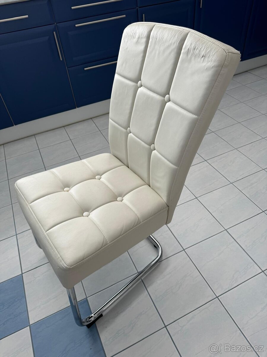 Prodám 10 kusů židlí, materiál bílá koženka, stav viz. foto, osobní odběr.