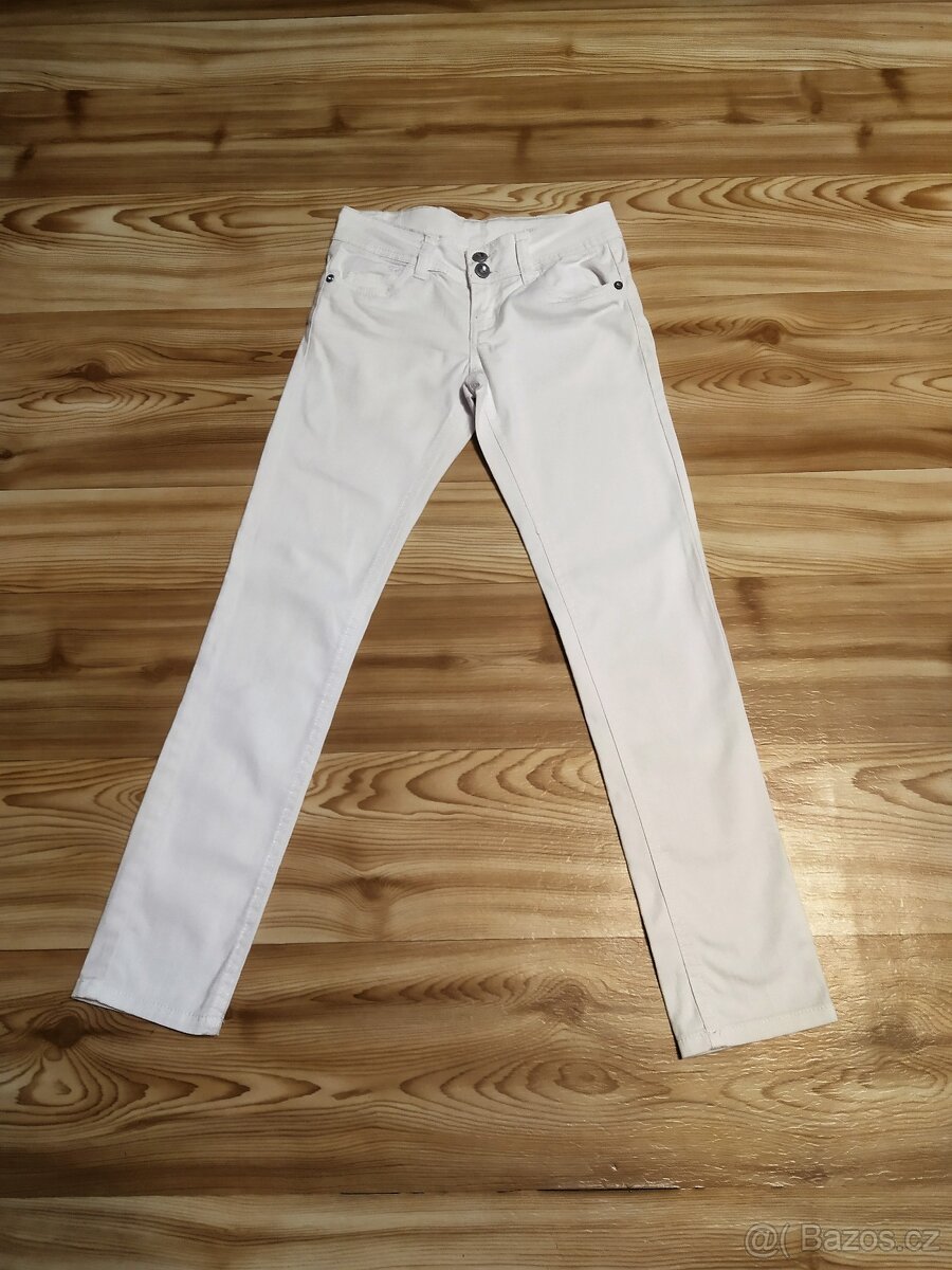 Nabízím dívčí bílé džíny ve velikosti 140-146. Džíny jsou ve velmi dobrém stavu s knoflíky se zdobnými kamínky. Rozměry: délka 86 cm, rozkrok 67 cm a pas 2x30,5 cm. Posílám i přes Zásilkovnu (90,-Kč) a mohu i přes Balíkovnu (80,-Kč). Kliknutím na mé jméno se vám zobrazí celá má nabídka.