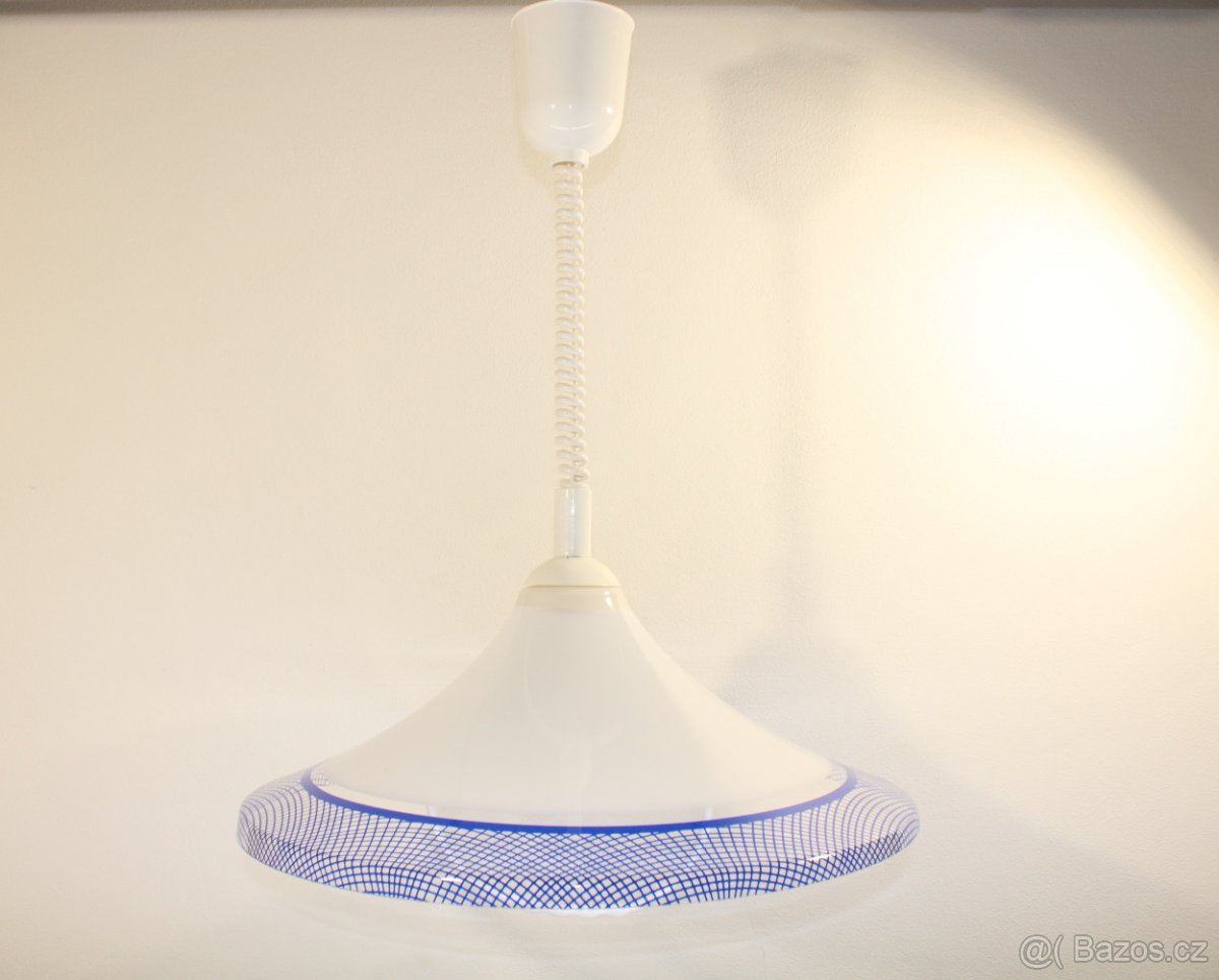PRODÁM NOVÉ AKRYLÁTOVÉ LUSTRY SUKÝNKA BÍLÁ S MODRÝM VZOREM VÝPRODEJ Z OBCHODU. !!!!! POSLEDNÍ 2 KUSY !!!!!! Objímka E27 - rolo 1x60 W plastové madlo akrylátový kryt 475 mm Možný osobní odběr nebo zaslat přes Balíkovnu za 80,- Kč.