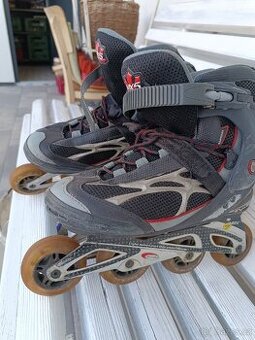 Prodám kolečkové brusle vel. 44, začátečníci ocení ,zajeté a levné !!
