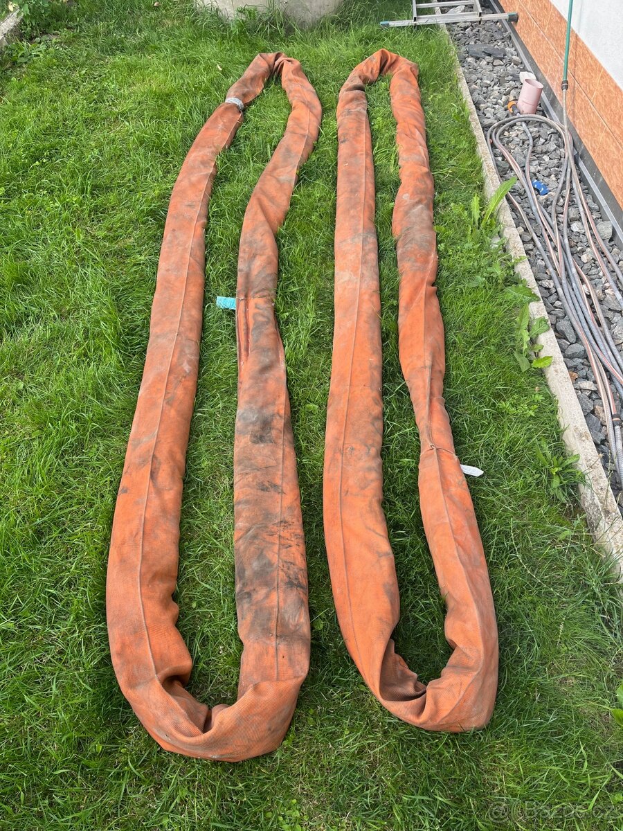 Prodám textilní vazáky, 2 kusy, nekonečná smyčka. Nosnoat 40tun(viz. štítek na fotce). Užitná délka 3790mm Cena je k domluvě - navržená za kus.