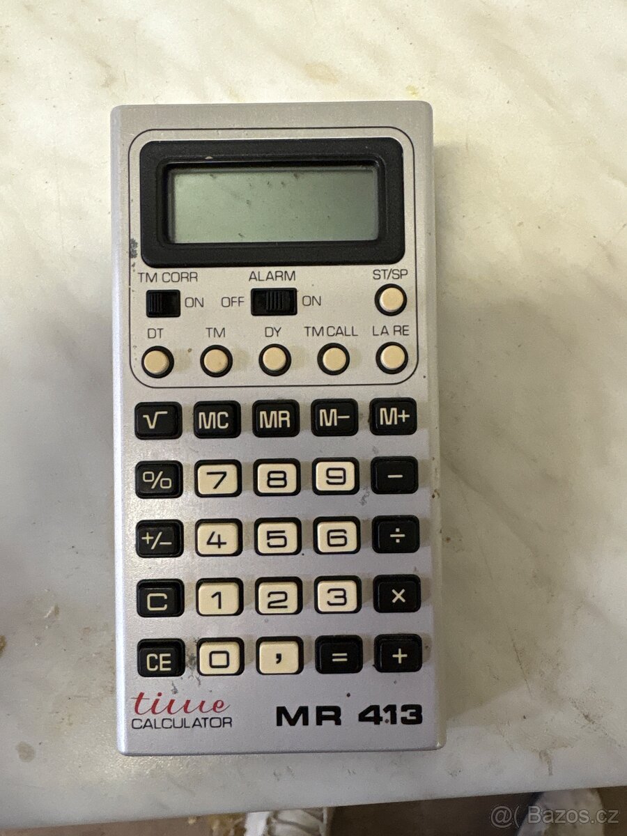 Tesla MR 413 - retro kalkulačka s budíkem stopkama datumem