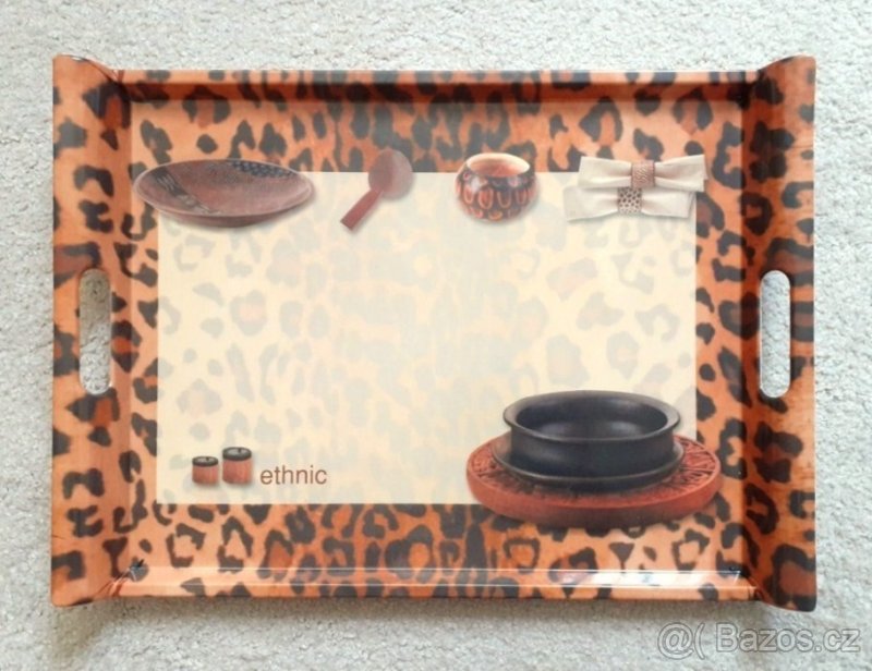 Tác - podnos, ETHNIC motiv, pevný plast, výborný stav, 50,5 x 37 cm Cena 200,- Kč