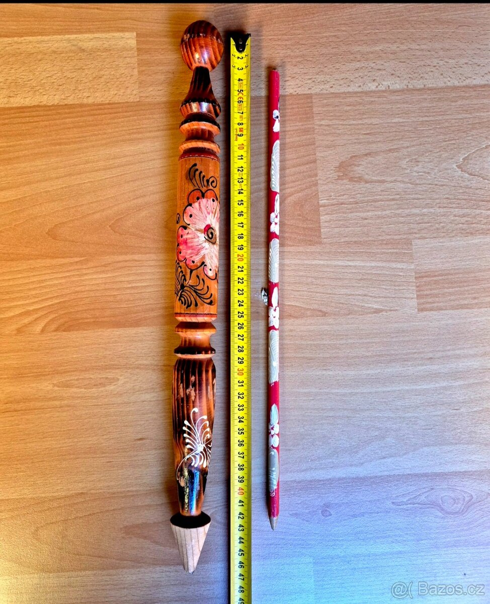Prodám velkou ručně malovanou dřevěnou tužku o délce 50 cm a menší o délce 40cm. Cena za obě 120kč/možno i jednotlivě, velká 100kč a malá 30kč. Po dohodě osobní vyzvednutí nebo možnost odeslání.
