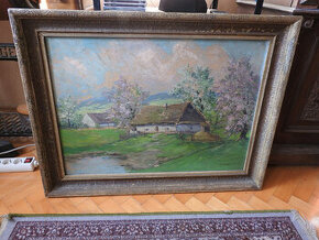 Obraz olej krajina s chalupou V.Novák