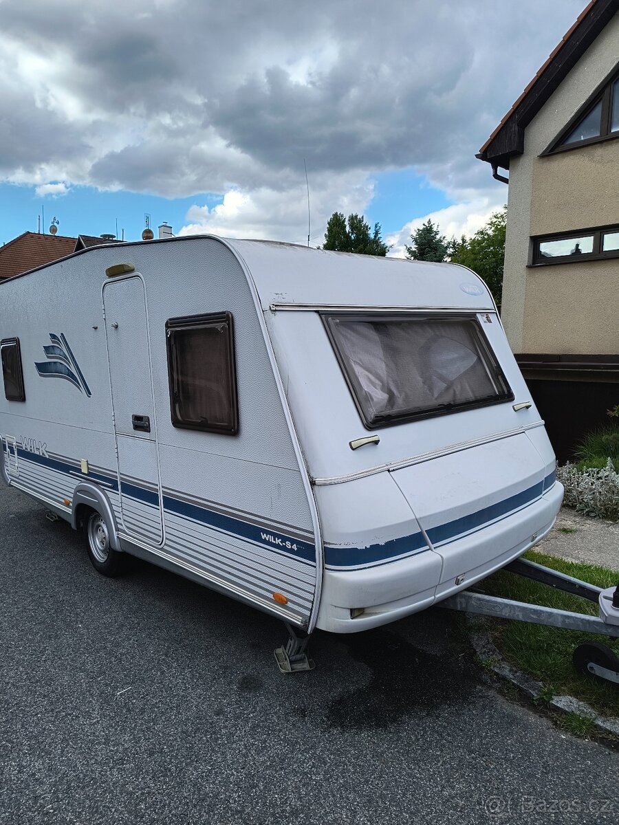 Prodám vybavený karavan Wilk S4 450, r.v. 2005 pro 4 osoby . Délka 6450, hmotnost 1025/1300. Funkční mover na dálkové ovládání, plynové topeni rozfukem, včetně plynoveho vařiče, dřez s tekouci vodou , umyvatko s tekouci vodou, v sedaci casti nádrž na vodu. V karavanu čalouněné rozkládací sezeni ( 140x200) kde se dokazi vyspat i dva dospělí , . Matrace ( též pro dvě osoby) a polstrování nepoškozené. Karavan má výklopná okna se zatahovacimi roletkami a sitemi proti hmyzu. Karavan nepoškozený ve velmi dobrem stavu, nezatekly, neshnily s platnym STK, nebouraný. Též je i vybaveny hrnci, talířky a vybavenim pro vaření. Cena : 180.000 Kč , možnost jednat o ceně.