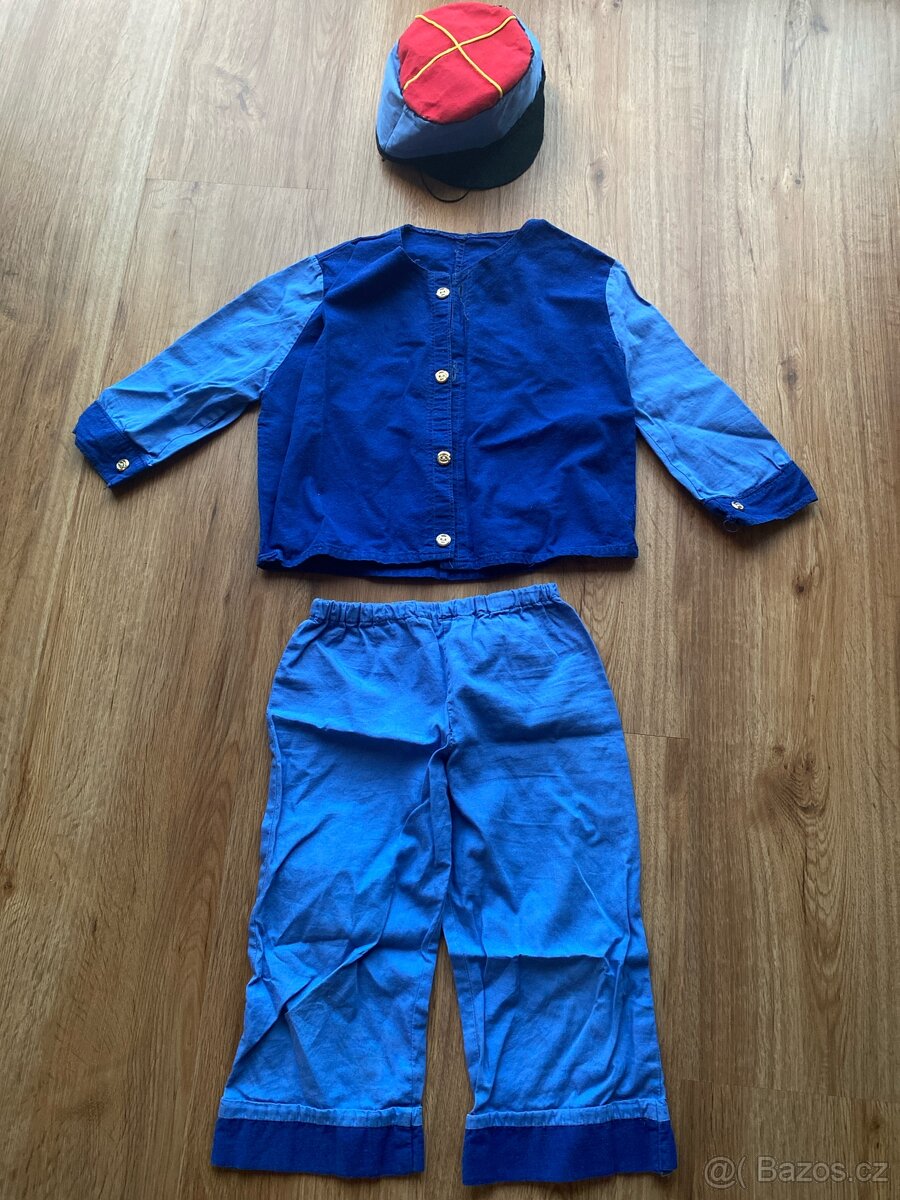 Ruçně šitý roztomilý kostým výpravčího. Rozměry viz foto. Na cca 2-3 roky.