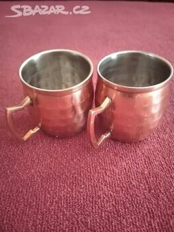 2 ks. roztomilé kovové hrnečky, měděný plášť uvnitř niklovaný, kladívkový dekor, ouška litá, bytelné. Výška: 5,5 cm, šířka: 4,5 cm, šířka s ouškem: 6,5 cm. TOP stav. Cena za oba: =200,-Kč. Osobní odběr: Praha 5, Smíchov