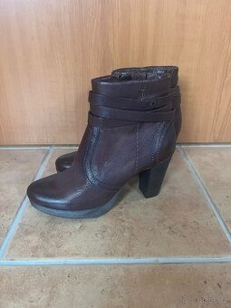 Nové, nenošené. Hnědá barva, materiál kůže, zateplené, zapínání na zip, výška podpatku 7 cm. Délka vnitřní stélky 24 cm.