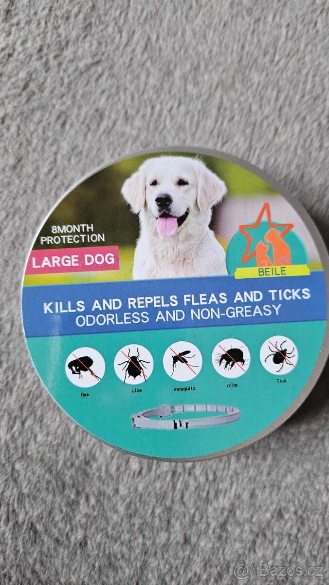 Zatahovaci obojek proti klíšťatům a jinym parazitům. Ochrana az na 8 mesicu. Pro velkeho psa 70cm. Pro malého psa 38cm. Cena uvedena za 1 kus.