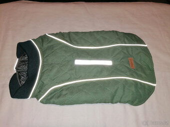 Zelená zimní bunda pro psy, zapínání na břiše na suché zipy, s reflexními prvky, vel.M (celková délka 39cm, obvod hrudi 50-58cm). NOVÁ 280 Kč