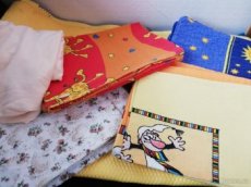 Povlečení do dětské postýlky:modre,Křemilek,bílé s kytičkami a žirafy. Plus prostěradlo do malé postýlky. Cena za jedno povlečení 180 Kč. Žirafy a Křemílek PRODÁNY!