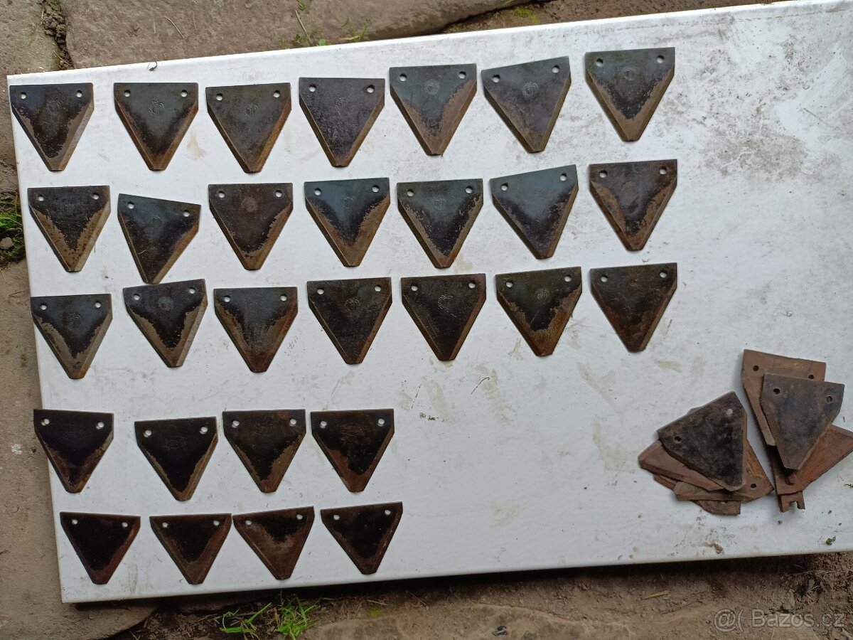Cena: V textu. Prodám nože nepoužité, viz foto Obr. 1 Řada 1-3, 21ks - rozteč děr 51,5 Řada 4, 4ks - rozteč děr 52,5 Řada 5, 4ks - rozteč děr 47,5 Cena dohodou Zbytek vpravo dole použité - přidám zdarma