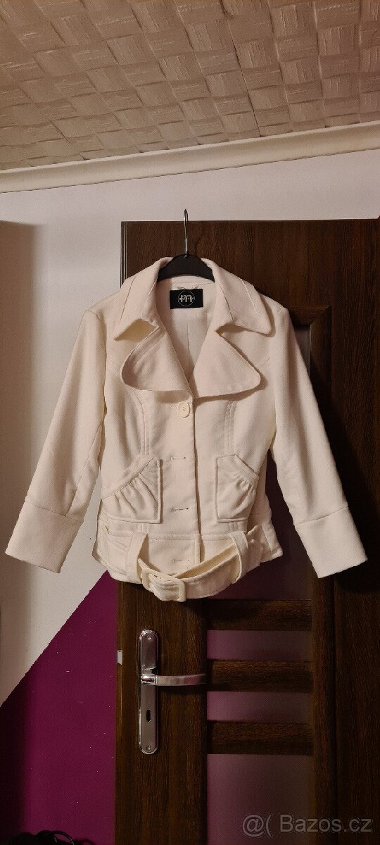 Novy bílý kabatek jaro - podzim .Velikost 34.xs Stav velmi dobry. Nevhodný dárek.