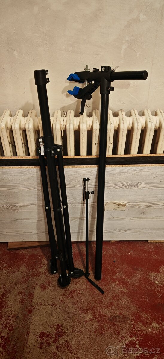 Prodám ve velmi pěkném stavu skládací montážní stojan Force Base. Stavitelný skládací montážní stojan se čtyřnožkou. Pro snadnější práci na Vašem kole je stojan doplněn o poličku a držák přední vidlice. Horní čelist je otočná o 360° a je určena pro průměr do 45 mm. Nosnost 30kg. Cena 700kč.