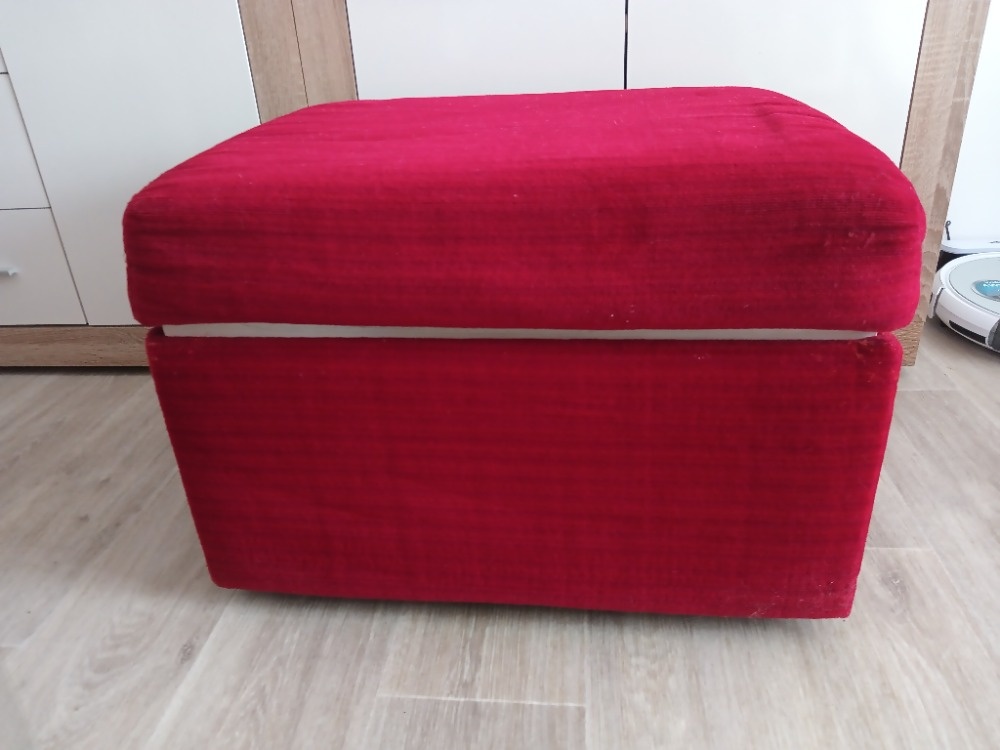 Prodám čalouněný taburet, rozměry: výška 40cm, d: 55cm, š: 40cm. Velký úložný prostor, běžné opotřebení. Vlastní odvoz.