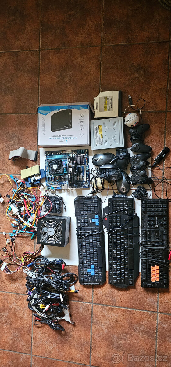Prodám vše co je na fotce. Ideálně pouze jako celek. Vše by mnělo být funkční. Myši, klávesnice, Základní deska s procesorem a grafickou kartou, zdroj, redukce a kabely + gamepady + kamera + mechanika + TV karta. Cena 700 + poštovné.