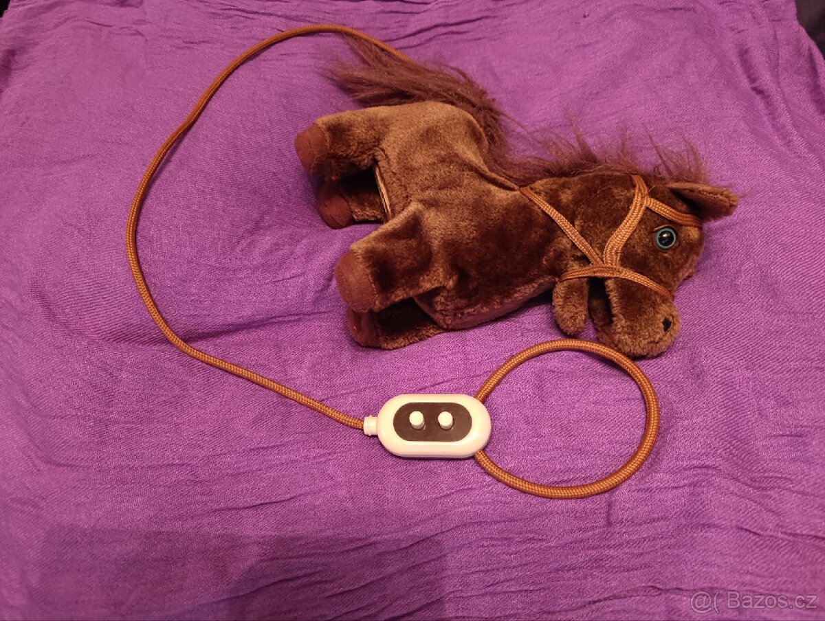 Na ovládání, vydává zvuky a kluše. Hnědého plyšového koníka si mohou holčičky a kluci ovládat dálkově pomocí kabelu. Pokud ho aktivují, koník zaržá a rozejde se. Mohu poslat přes zásilkovnu nebo balíkovnu.