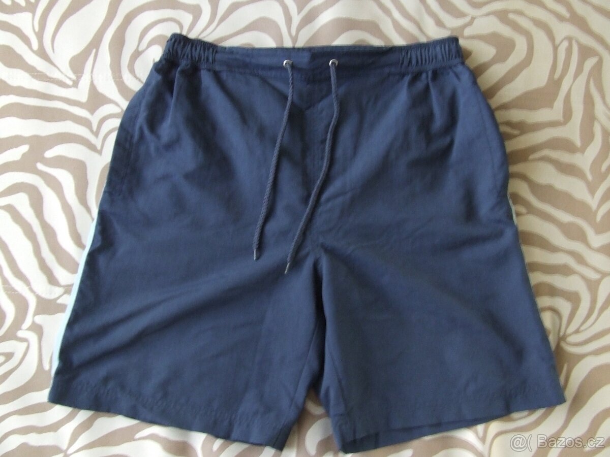 Kraťasy pánské vel. M 100% nylon s vnitřní síťkou na gumu i šňůrku za 30 Kč; šířka v pase 40 cm - na gumu i šňůrku za 25 Kč; poslední - polodlouhé - vel. M - 100% bavlna - za 40 Kč