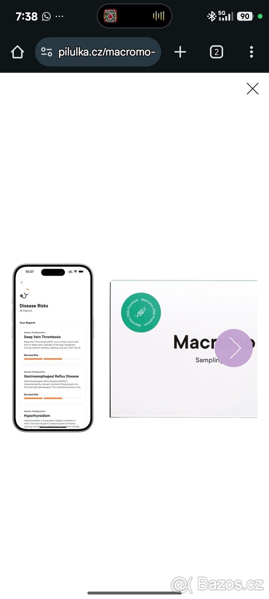 Prodám, nerozbalené balení Macromo DNA Premium je komplexní test díky kterému získáte 144+ výsledků, včetně doporučení pro Vaše zdraví, výživu, sport i spánek. Zjistíte své predispozice k nemocem a dostanete konkrétní doporučení, jak se jim vyhnout. Jednoduše v pohodlí domova na základě odběru ze slin.