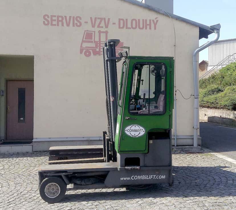 Čtyřcestný vysokozdvižný vozík Combilift C4000, nosnost 4000Kg, výška zdvihu 4,0m (duplex s plným volným zdvihem,), hydraulicky přestavitelné vidle, r.v. 2004. Velice dobrý stav po celkové údržbě a servisu, nová TK. Uvedená cena je bez daně z přidané hodnoty.