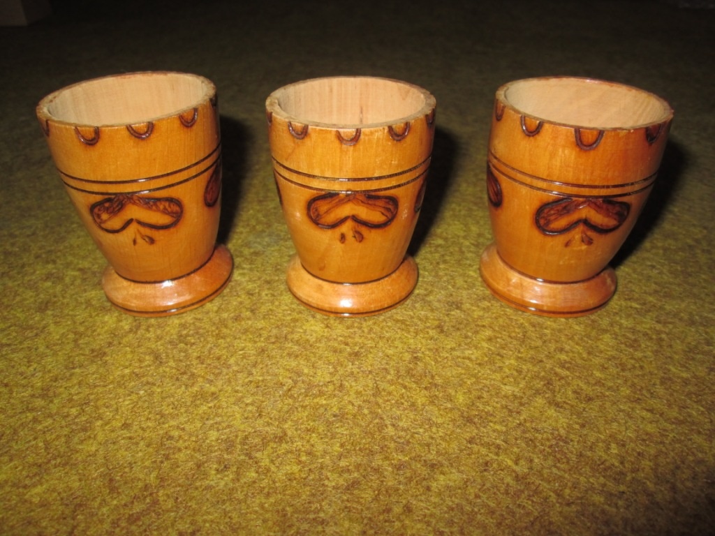 Dřevěné, ručně zdobené vypalováním. Výška je 6 cm, průměr je 4,5 cm. Můžete mi napsat i na e-mail: prochazka2224@seznam.cz.