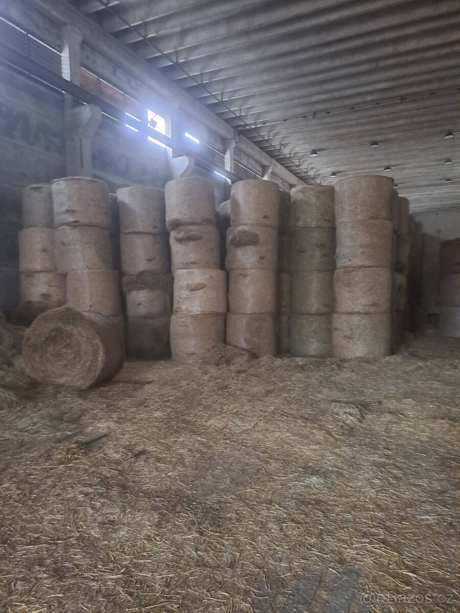 Cena: Dohodou. Prodám balíky sena , prům. cca 145 cm, skladováno v hale