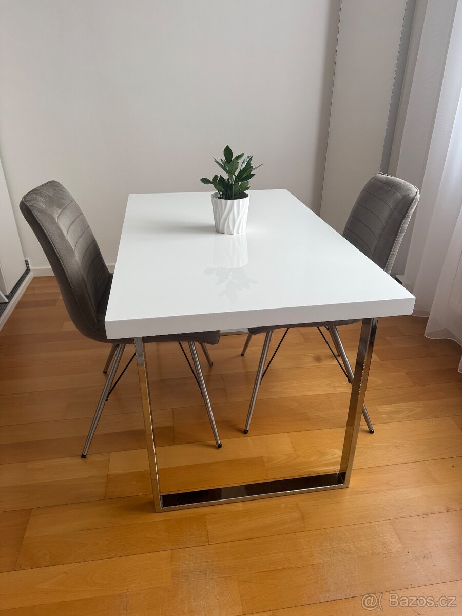 Bílý lesklý, nerezové nohy. Byl používaný, na třech místech oděrka. Pc:4500kc. Rozměr 75x120cm