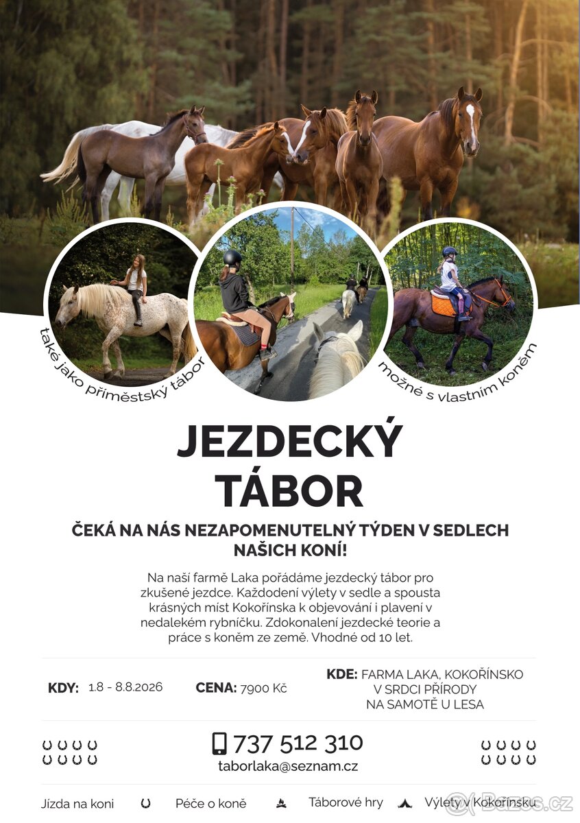 I na letošní léto máme skvělý plán! Pořádáme jezdecké tábory, první je vhodný i pro začínající jezdce, naučíme se základům všeho od koní. Spoustu farmových zvířátek a zábavy kolem farmy. Ubytování v chatičkách, při nepřízni počasí je možné topit (sušit zmoklé oblečení) Bezva parta a spoustu aktivit. Druhý termín je pro zkušené jezdce, celý týden strávíme s koňmi a v jejich sedle Čekají na nás nekonečné krásy Kokorinska a spoustu nových znalosti. Těšíme se na vás 🦄