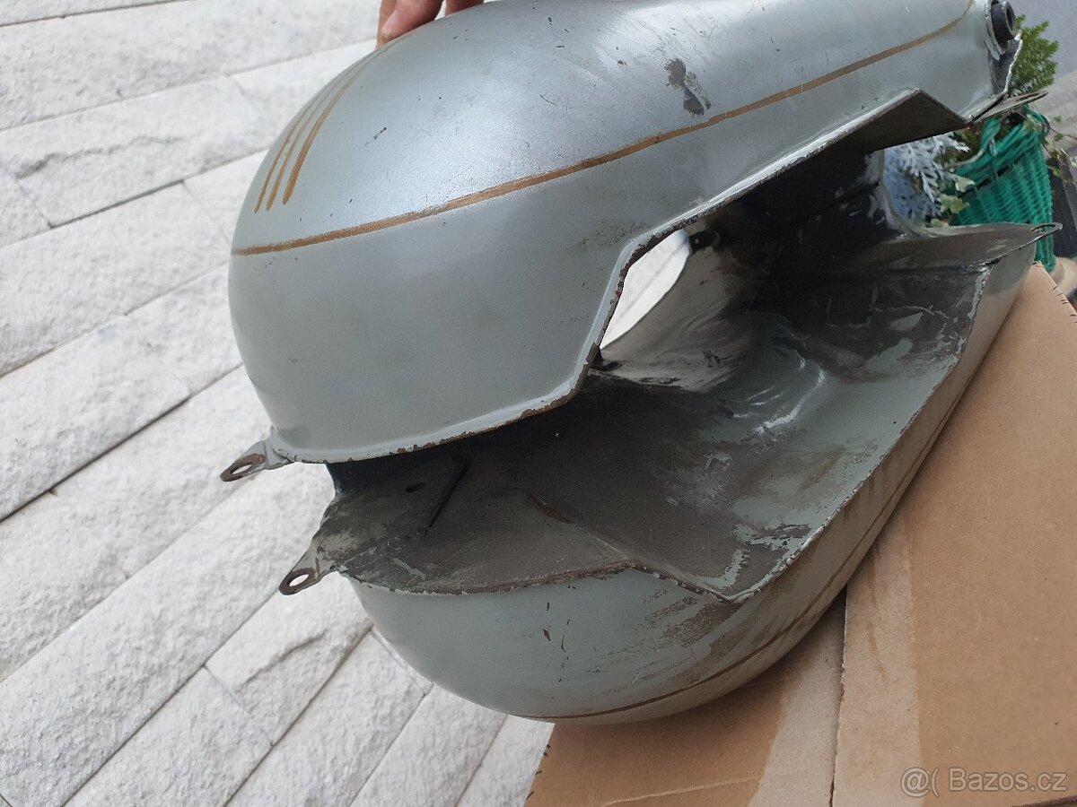 Na prodej,nebo na výměnu.Tahle krásná originální původní nádrž na Péráka provedení holubí šeď v původním laku vhodná na původní stroj,vnitřek nádrže super..na prodej,nebo výměna za originalní původní díly na předválečné ČZ nebo za zajímavé plechovky,cedule Auto-moto..v případě zájmu nabídněte