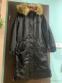Prodám dámský kabát vel. 36-38 zn. Reserved, zapínání na zip s patenty, boční kapsy, rovný střih, kapuca s odnímatelnou chlupatinou, boční rozparky na šňůrky, oranžová podšívka, perfektní stav. Cena: 350 Kč.