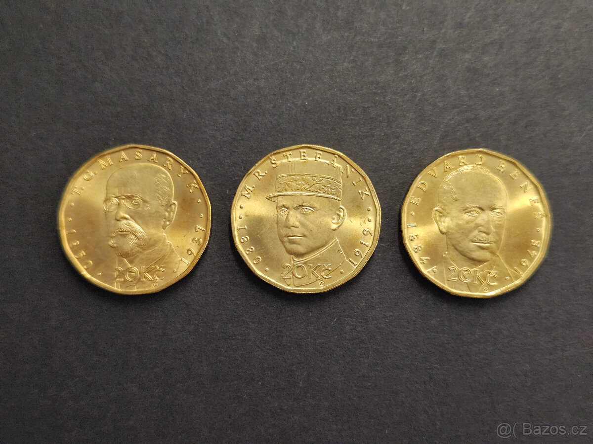 20Kč mince z roku 2018: Masaryk, Štefánik, Beneš Kontaktujte mne prosím přes email. Číslo je smyšlené z důvodu obtěžujících SMS. Možné osobní předání Brno, nebo poštou. Platí do smazání.