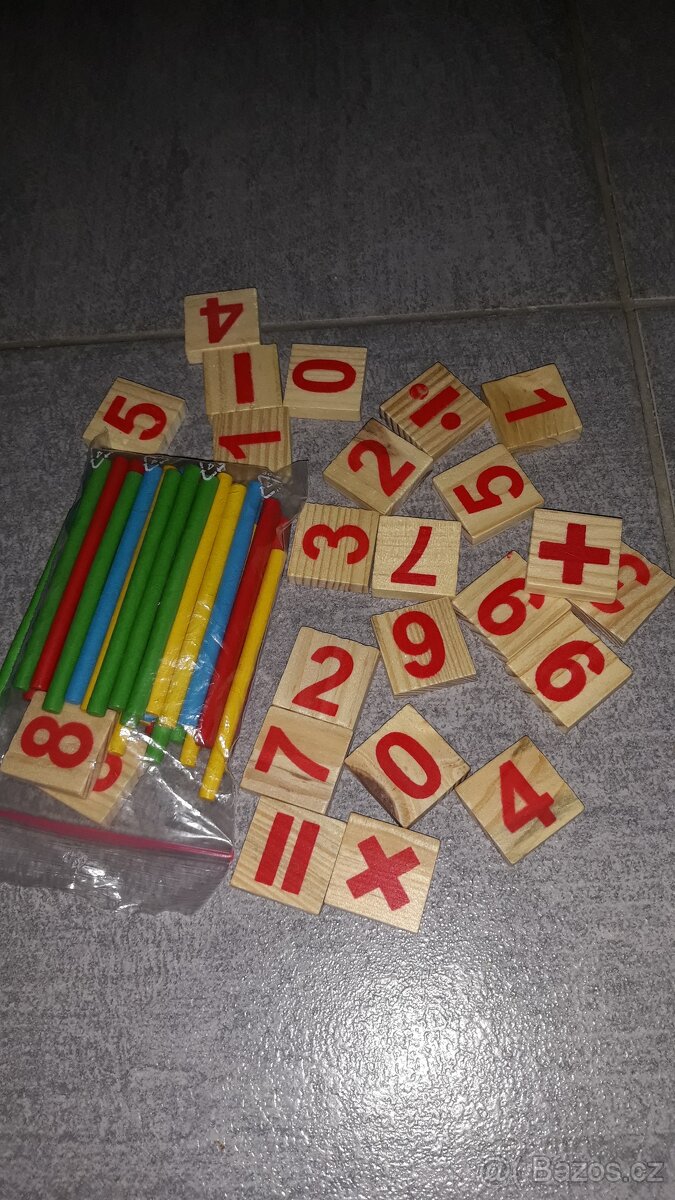 Různé hry. 3x pexeso/ puzzle pro nejmenší. Magnetická tabulka. 3x dřevěné počítání. Cena celkem.