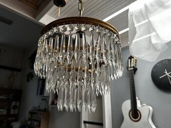 Tří urovňový Průměr vrchního nejširšího kruhu je cca 26,5cm Výška lustru je cca 24-25 cm Krystaly jsou všechny a bez vad. Kvůli vysokému stropu pražského domu jsem přikoupil delší zlatý řetěz i zlatý drát, takže je možné jej nainstalovat i na stropy až 370 cm Tyto jsou součástí ceny. Osobní převzetí Praha 3 Žižkov