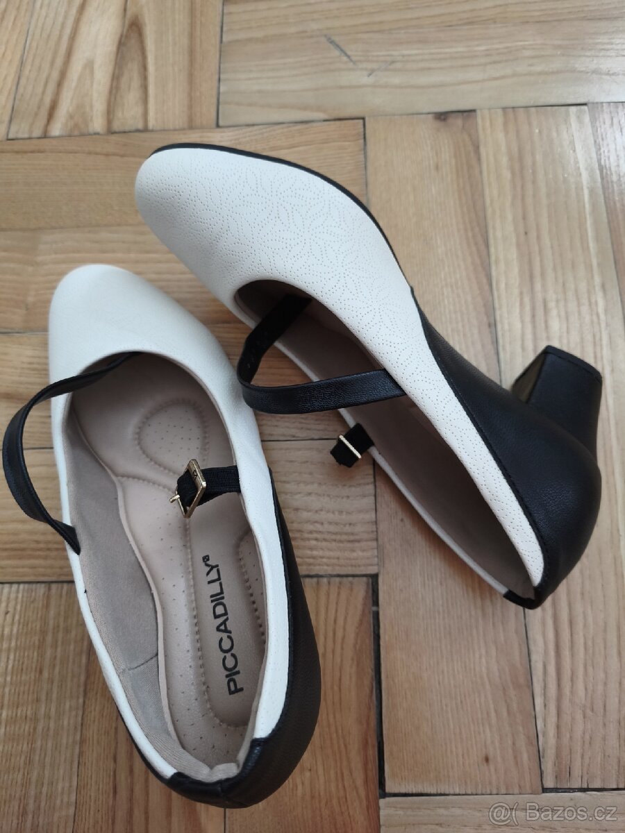 Dobrý den, nabízím krásné společenské i taneční botičky, velmi pěkné, zachovalé barva krémová bílá + černá , velikost 38 😘😘