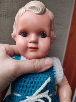 Krásná starožitná panenka zn.Minerva,37cm,oči modré s řasami,bez vady,
