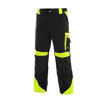 Prodám nové, pouze vyzkoušené Černé pánské montérky do pasu se žlutými doplňky a reflexními prvky. Velikost 50 Velké přední klínové kapsy, multifunkční kapsy na stranách a dvě zadní kapsy s klopami schovají telefon, metr a další drobné předměty potřebné k práci. Pohodlné nošení zajišťuje pevný pas s poutky a gumou v bocích. Kolena zesílena 600D polyesterem s možností vložení kolenních výztuh. Materiál 65 % polyester, 35 % bavlna. Norma EN ISO 13688