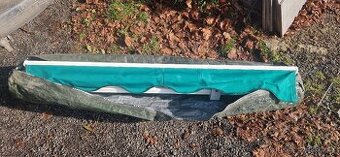 Dobrý den, nabízím markýzu používanou na autě při cestování. Součástí je nepromokavý vak se zipem a klika. Markýza je v bezvadném stavu. Šířka plachty 162cm, celková šířka cca 178cm. Samozřejmě lze použít na pergolu, zahradní domek, chatku.