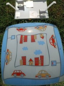 Prodám stropní svítidlo do dětského pokoje s autíčky a domečky. Rozměr 40x40 cm. Na dvě žárovky. Jako nové.