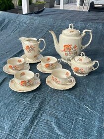 Prodám porcelánovou,čajovou či kávovou soupravu Bavaria 1945. Sada obsahuje 4xšálek,5x podšálek,cukřenka s pokličkou,mléková konvice, velká konvice s pokličkou na kávu či čaj. Dva šálky jemné oťuky,jinak parádní stav. Ostatní díky soupravy bez oťuků.