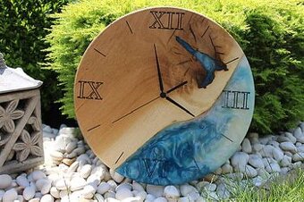 Ponúkam epoxidové nástenné hodiny Možnosť vybrať drevo, priemer, farbu, ciferník Dostupnosť do 3 týždňov