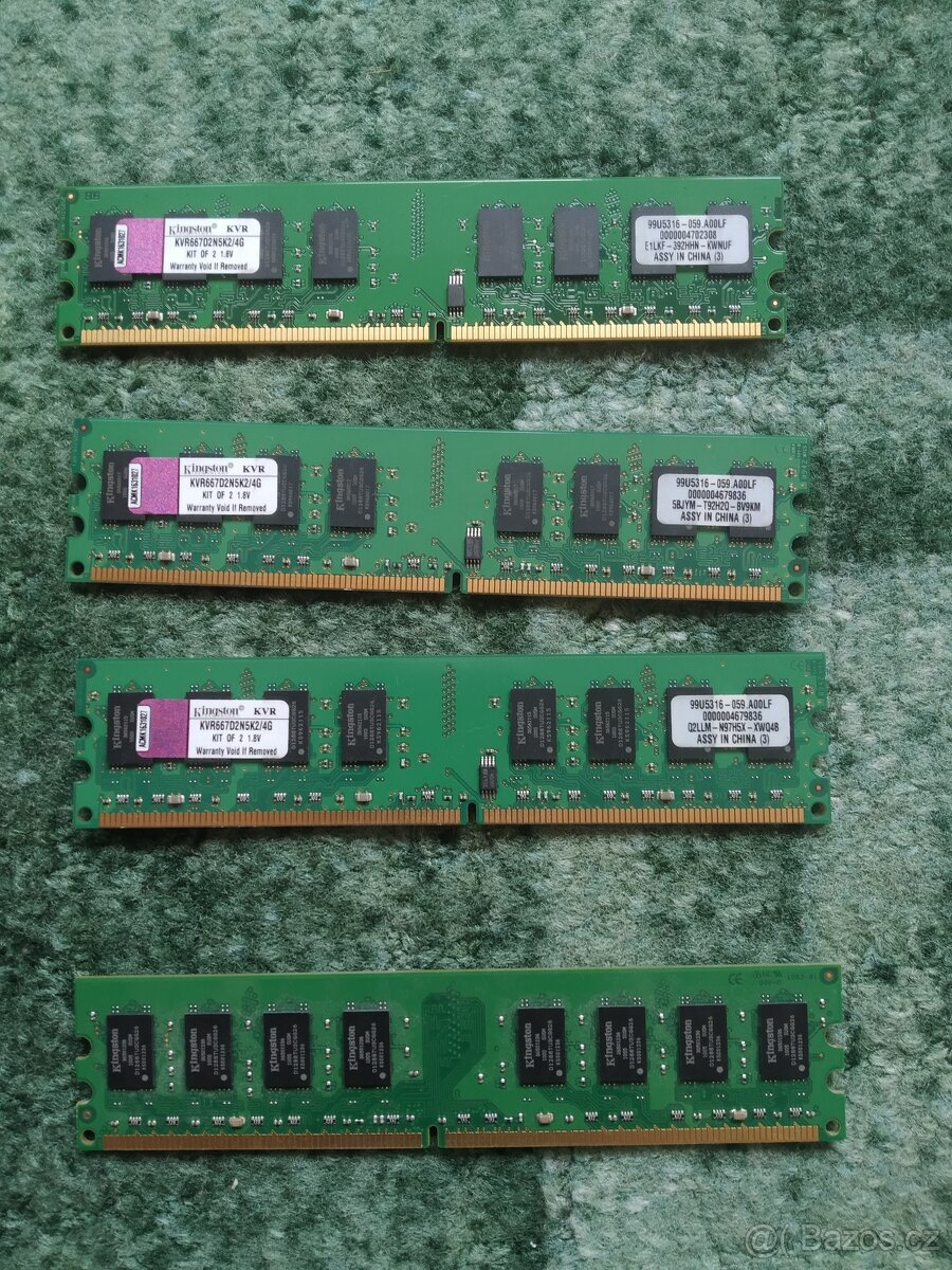 Prodám i více kusů paměti RAM do PC. Kingston KVR667D2N5K2/2G 2GB 667MHz DDR2. výrobce: kingston frekvence: 667 MHz napětí: 1,8 V velikost: 2 GB Cena je za kus. Možnost osobního vyzvednutí v Ostravě nebo po domluvě v Brně či zásilkovna/balíkovna