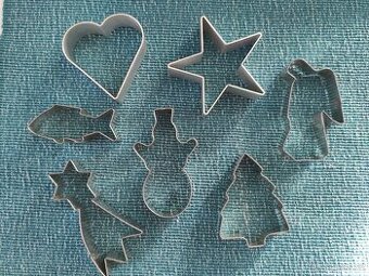 Prodám různé sady kovových vykrajovátek v pěkném stavu: Sada 1: 7 kusů, srdce a hvězda IKEA, ostatní nevím, bez poškození. 70 Kč. Sada 2: 10 kusů, např. vláček, měsíc , srdce, ... 100 Kč. Sada 3: motiv Velikonoce/jaro, 11 kusů. 100 Kč. Osobní odběr v Olomouci. Zaslání Balíkovnou za 75 Kč, Zásilkovnou za 89 Kč.