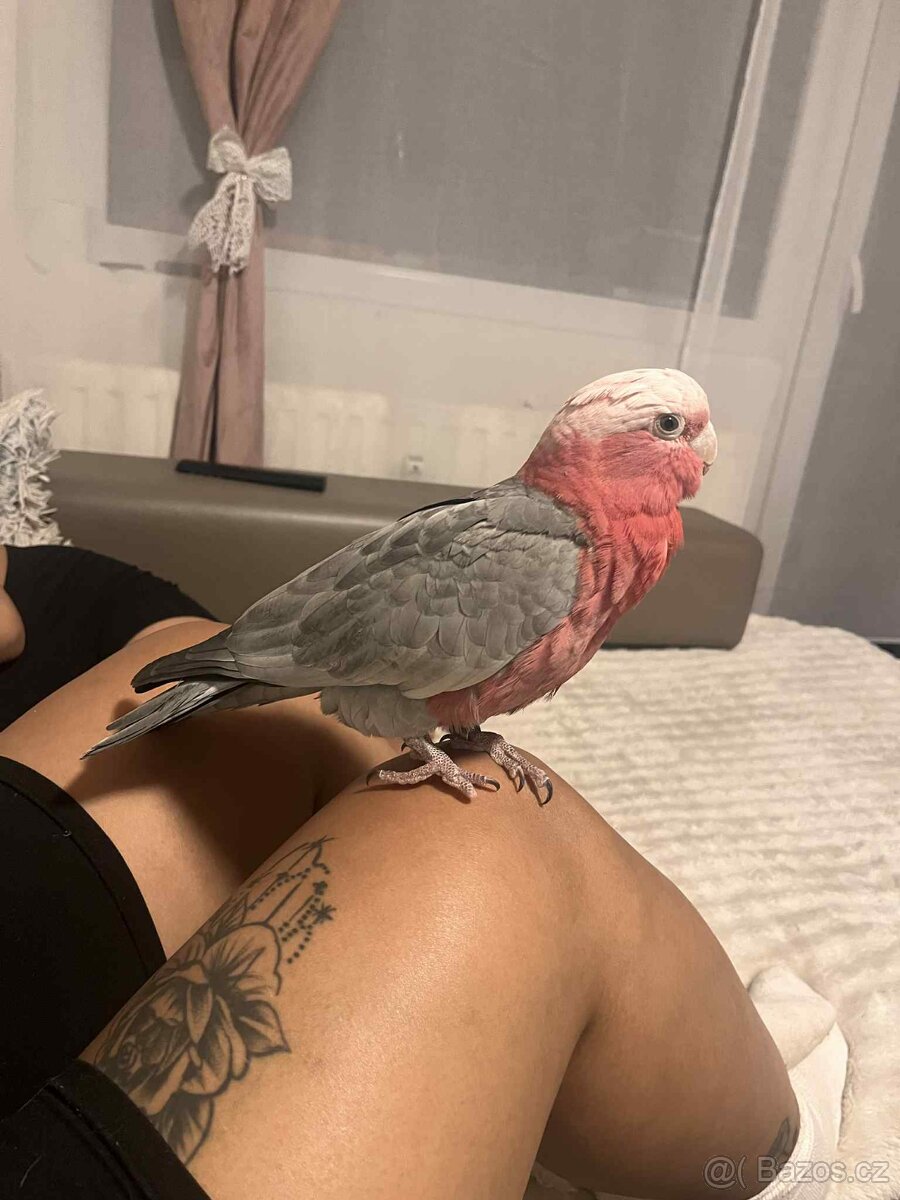 Prodám kakadu růžový je mu rok a půl ručně dokrmení je to mazel chybí mu jeden drápek opakuje hodně zvuky jsem tam řekne své jméno prodávám i s klecí