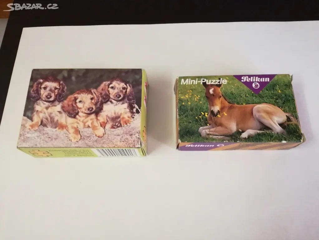 2 × malé puzzle: - tři štěňata, 14 × 20 cm - hříbě, 16 ×12 cm Cena 60 Kč/ks
