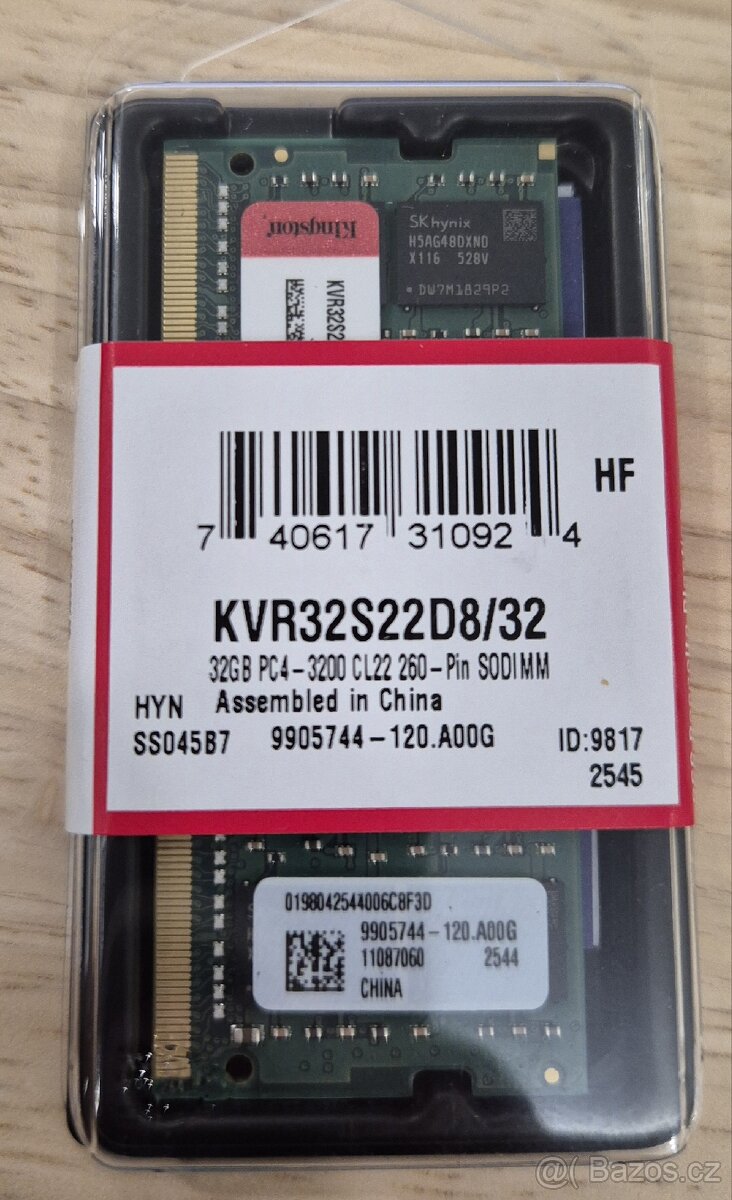 Paměť DDR4 32GB RAMNová nerozbalena paměť pro notebook/mini PC. V připadě problémů s paměti měním kus, za kus.