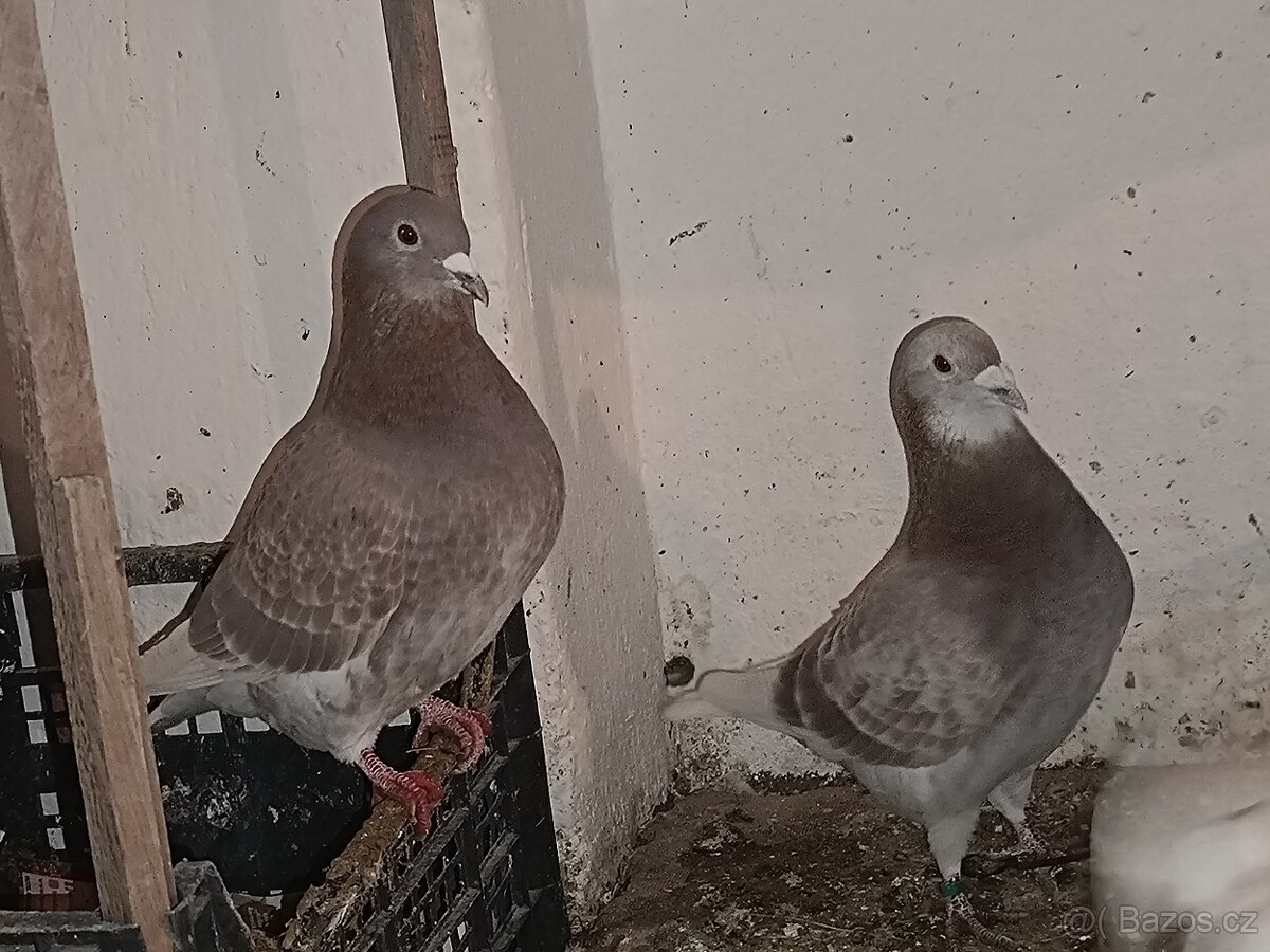 Cena: V textu. Poštovní holubi dva páry 100 Kč kus 150 za pár Anglický pávík 3x0.1 100 Kč kus Bílý kříženec 50 Kč (moravský pštros x benešovský bílý)