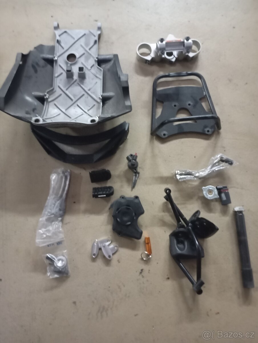 Cena: Dohodou. Různé dily - osa zadního kola, brýle, páčky, spojkový váleček, stupačky, kryty, ...